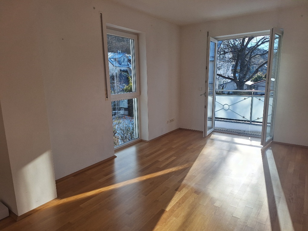 - Wohnzimmer mit großen Fenstern, Zugang zur Terrasse
